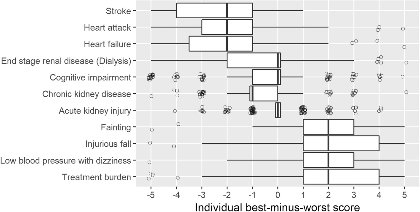 Aschmann HE, Puhan MA, Robbins CW, et al. Outcome preferences of older people with multiple chronic conditions and hypertension: a cross-sectional survey using best-worst scaling. Heal Qual Life Outcomes 2019;17(1):186. doi: https://doi.org/10.1186/s12955-019-1250-6