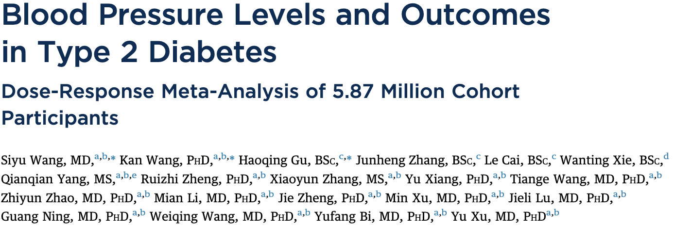 Wang S, Wang K, Gu H, et al. Blood Pressure Levels and Outcomes in Type 2 Diabetes Dose-Response Meta-Analysis of 5.87 Million Cohort Participants. JACC Published Online First: 2026. doi: https://doi.org/10.1016/j.jacc.2025.10.068