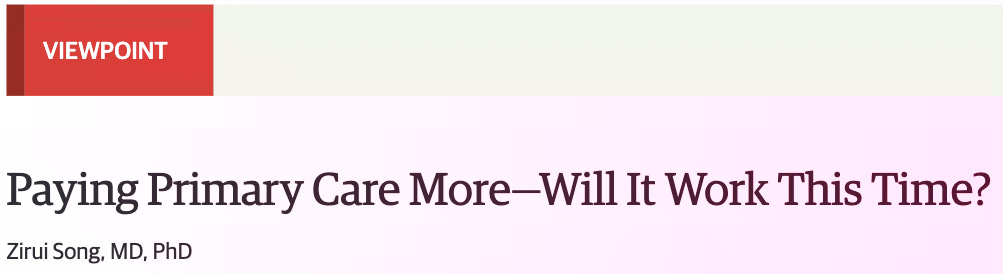 Song Z. Paying Primary Care More—Will It Work This Time? JAMA 2025;334(18). doi: https://doi.org/10.1001/jama.2025.16467